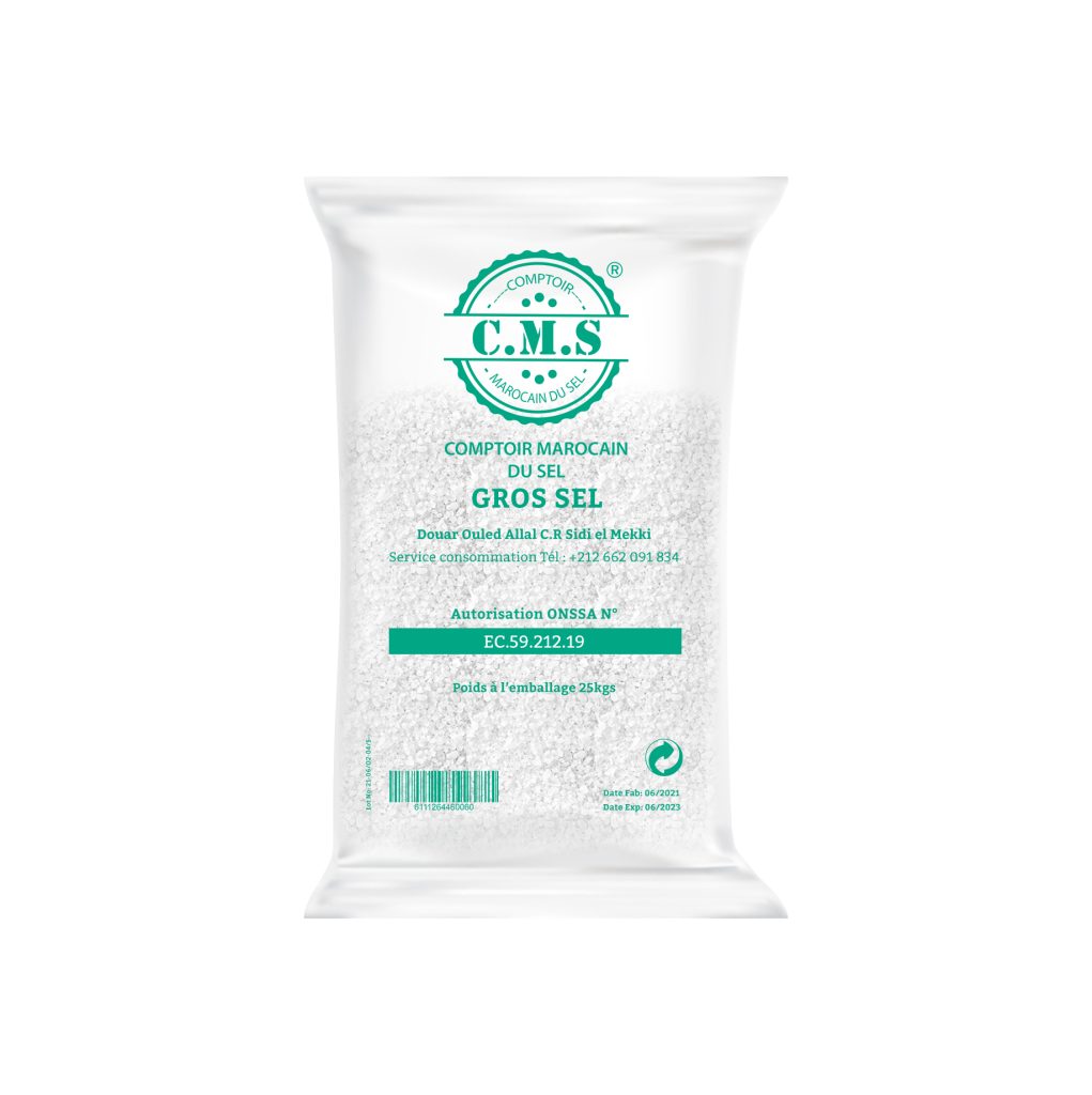Disponible en gros sel ou sel fin, en sacs de 25 kg et 40 kg.
